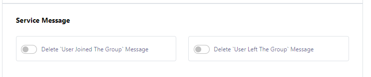 Service Message: This feature enables the deletion of `User Joined the Group` and `User Left the Group` messages.