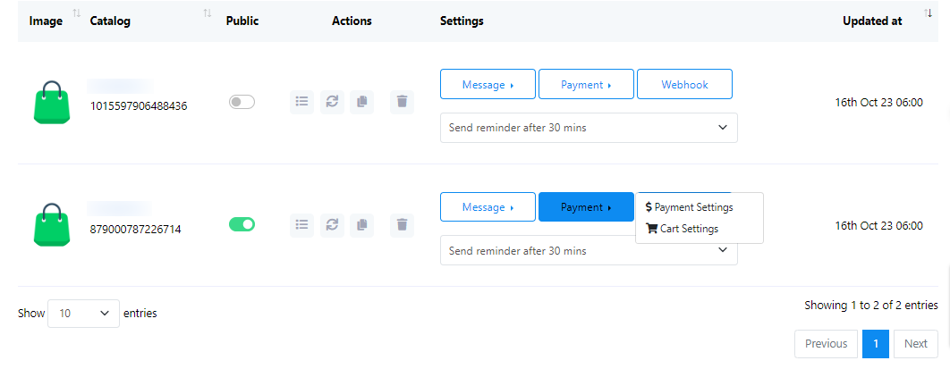 - You`ll find the catalog name and ID. There`s an option to enable or disable the public status.